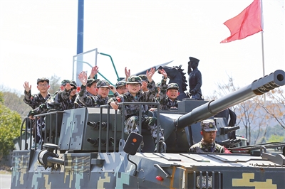 学生们还乘坐了轮步式坦克战车,炫酷的外形和仿真的轰鸣声让大家紧张而又期待,不时地发出阵阵惊呼声和欢呼声。