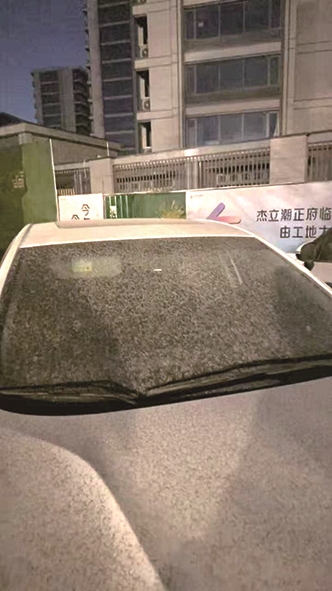 “扬尘问题很严重,渣土车一开,全部都是尘土;工地里面施工,也都是尘土飞扬。”这位橙友表示,现在不少业主出门,都要戴上口罩,“停在路边的车,都蒙上了厚厚的一层灰。”