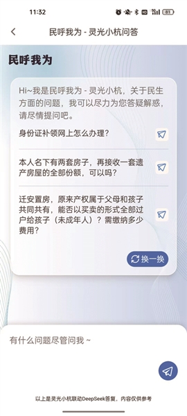 3.在对话框中输入问题,“灵光小杭”将第一时间给出权威答复。