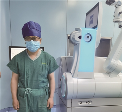 2024年3月31日11:08,赵向阳主任医师在海南博鳌国际眼视光中心体验新一代机器人全飞秒后合影。 受访者供图