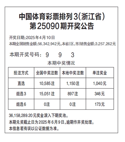 中国体育彩票排列3(浙江省) 第25090期开奖公告