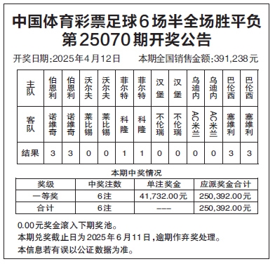 中国体育彩票足球6场半全场胜平负