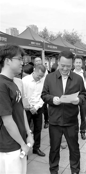 近日,湖南工业大学举行春招,22岁本科毕业生苗同学主动在现场向广东省阳江市市长推荐自己。