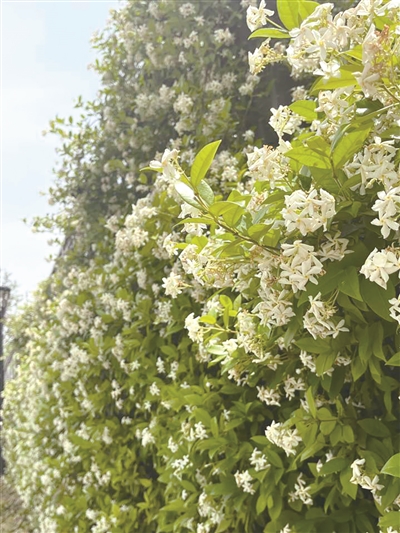 橙友“Linda”:地铁屏峰站D口西侧,长几十米的风车茉莉花墙,很好看。