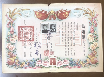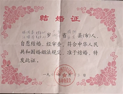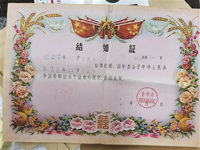 “我们两个人是1980年登记结婚的,那个年代的结婚证,看起来就像是现在的一张奖状,中间有一颗大大的红星。”陈大伯说。