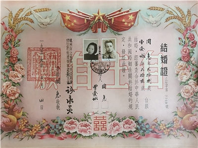 不同时期的结婚证书,质地、样式、图案、内容都不一样。民国时期的婚书,大多用红纸墨书。到了20世纪,五六十年代的结婚证色彩浓郁,类似于奖状;70年代的结婚证上印有毛主席语录;八九十年代的结婚证统一换成了红本子,也小了很多。