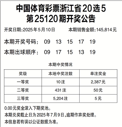 中国体育彩票浙江省20选5