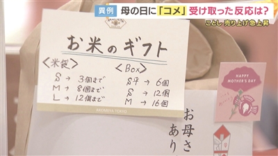 在一些商场和购物网站,大米也上榜“母亲节推荐礼物”,销量较往年增加。大阪一家商场的工作人员说,母亲节送大米是今年的新潮流,这表明消费者开始重视礼物的实用性。