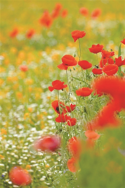 出镜率最高的赏花地,铜鉴湖花海绝对排第一,那一片火红的虞美人花海,美得让人挪不开眼。其中有一款雪莉虞美人,不仅颜色梦幻,还有可能开出半重瓣或重瓣,花期也要比传统的大花虞美人长,这个时节正是盛花期。