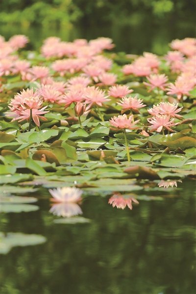 就算马路边,这个时节也常常能偶遇一片花海、花毯。比如古荡地铁站旁的马鞭草花海,浪漫的紫色波浪随风摇曳,远远看去就像普罗旺斯的薰衣草田。艮山西路的花边石竹,也开成了花毯。天气渐热,西湖的睡莲越开越热闹,悄悄开成了莫奈笔下的油画。余杭塘河畔的金鸡菊,已经在阳光下闪闪发光。