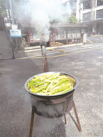 橙友“Jerrymma”:临安高虹镇龙上村,村民在自家门前用铁炉煮笋。