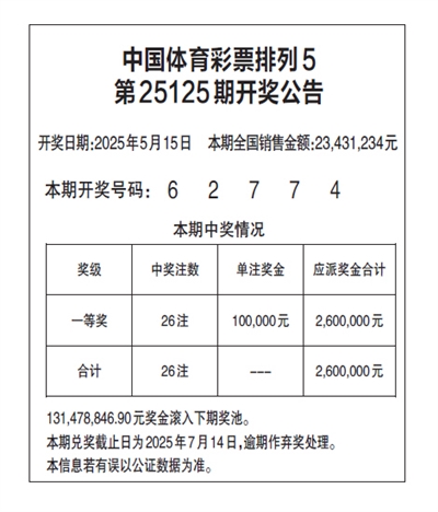 中国体育彩票排列5 第25125期开奖公告