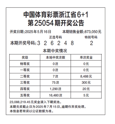 中国体育彩票浙江省6+1 第25054期开奖公告
