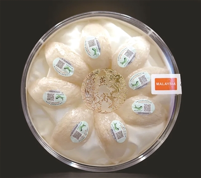 实行“一盏一签一码”,即每一盏、每一条燕窝上都粘贴溯源标签(这是中国检验检疫科学研究院监制的溯源标签)。