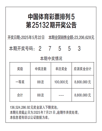 中国体育彩票排列5 第25132期开奖公告