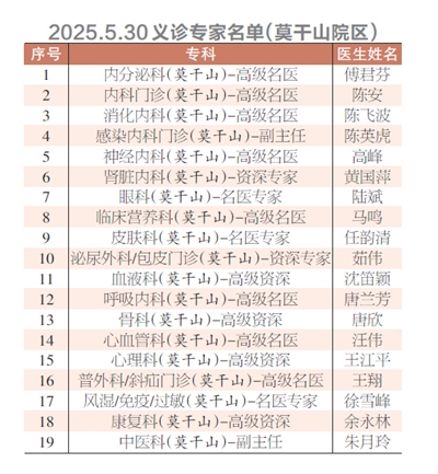 2025.5.30义诊专家名单(莫干山院区)