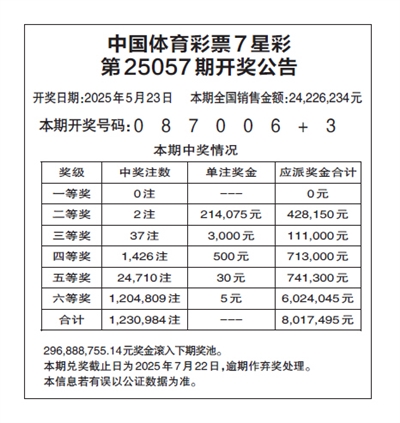 中国体育彩票7星彩 第25057期开奖公告