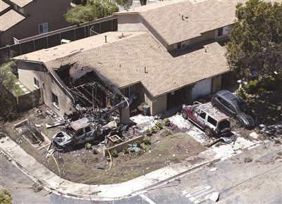 当地官员说,这架自美国中西部地区飞来圣迭戈的飞机当地时间约3时45分坠毁在一个军事人员居住的社区,引发多处住宅和车辆起火,大约100名当地居民随后被紧急撤离。