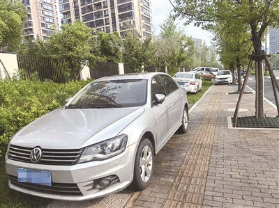 昨天上午,橙柿直通车记者来到宸宇府,看见通惠南路边的绿化带上确实停了不少车。有几辆车后轮停在人行道上,阻碍了盲道通行。