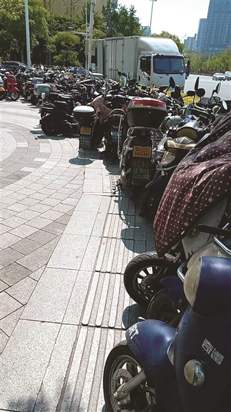 橙友“zvLxVn”:白杨街道三号大街与二号大街交叉口的大都文苑风情小区,其东面、北面及西北角的人行道、盲道长年被电瓶车违规停放、占据……