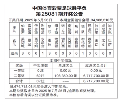 中国体育彩票足球胜平负 第25081期开奖公告