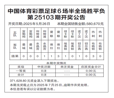 中国体育彩票足球6场半全场胜平负 第25103期开奖公告