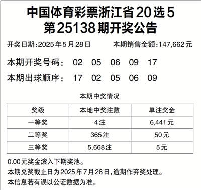 中国体育彩票浙江省20选5