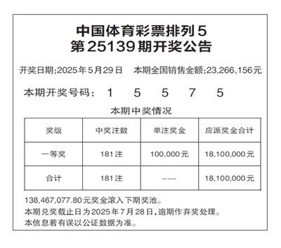 中国体育彩票排列5 第25139期开奖公告