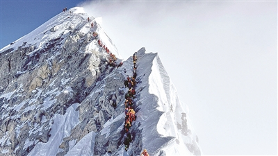 近日,珠峰登顶处附近又出现了“大拥堵”,登山者们在恶劣的天气中奋力登顶。由于峰顶附近的好天气持续时间有限,大量登山者排着队,绑在一根安全绳上。根据夏尔巴向导的说法,没有经验或知识的登山新手和专业登山者同时登山,导致人数过多。根据尼泊尔登山部门的数据,截至5月底,来自57个国家的468名外国登山者获得了攀登珠峰的许可。