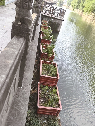 橙友金先生向橙柿直通车反映:萧山区城厢街道新开河,从战备桥至南门桥河边,2023年区河道保护管理中心设置了许多木制花盆种上月季花。一度花朵盛开,色彩鲜艳,成为一道美丽风景线。可是好景不长,如今杂草丛生……