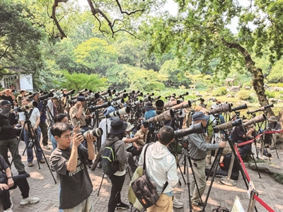 小徐说,上周末尽管下雨,还是有很多人冒雨在树下等候。其实杭州植物园一直都有领角鸮活动,只不过平常因为栖息地不固定,人们很难见到。最近是鸟类繁育季,领角鸮在植物园一棵大树的树洞安家生儿育女,吸引了很多游客和摄影爱好者。“主要是杭州植物园的生态很好,而且猫头鹰居住的这个树洞,非常漂亮,背景很美很上镜。”