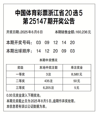 中国体育彩票浙江省20选5