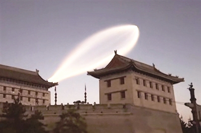 6月6日凌晨,西安夜空出现不明发光物,在钟楼上方头大尾小划过天际,几分钟后光从头部消散。据人民日报报道,该不明发光物就是6月6日04时45分发射火箭形成的尾迹。当天凌晨,我国在太原卫星发射中心使用长征六号改运载火箭,成功将卫星互联网低轨04组卫星发射升空,卫星顺利进入预定轨道,发射任务获得圆满成功。