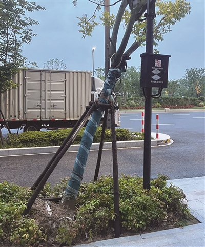 橙友“星光灿烂火火”:良运街与敦民巷交叉路口,人行道上面的树从根部开始倾斜,靠在了旁边的监控杆上。过往的行人和车辆很多,十分危险……