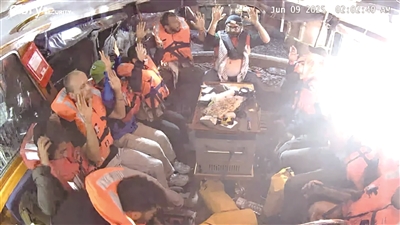 “马德琳”号乘员、欧洲议会法国议员丽玛·哈桑在社交媒体上说,“马德琳”号乘员9日凌晨2时左右在“国际水域”遭以军逮捕。文字配图显示,船上乘员身穿救生衣,坐在船上,双手举过头顶。