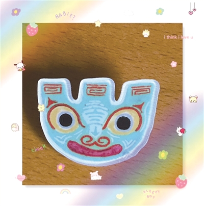 橙友“圆圆”:这个玉琮形状的徽章,是良渚博物院出品的,非常具有代表性啊。