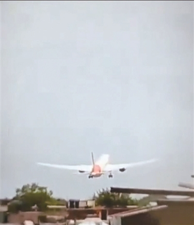 但视频显示,这架飞机未能爬升。正常情况下机头应向上扬起,飞机持续加速,但画面中它却保持水平飞行,随后开始下降,几乎像是在准备降落。