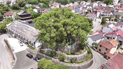 2015年,村里9位企业家还联手出资,在桃花庙故址建成一座六角双层攒尖式“揖樟亭”。亭子华彩高敞,与古樟相得益彰。