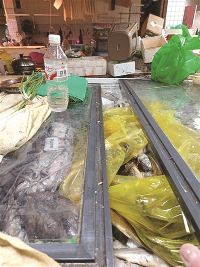 陶师傅说他这里带鱼、小黄鱼、鲳鳊鱼、鸦片鱼、乌贼等每天都在卖的,可能大伯没有找到。