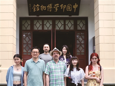 一行人在西泠印社社员、中国印学博物馆馆长乔中石的带领下,深入了解中国印章艺术的历史脉络,还特别参观了“汉三老碑”,聆听了西泠印社社员在战乱时期保护文物的感人事迹。得知David对先秦历史尤为感兴趣,乔馆长为他亲笔题写“抱朴含真”四字,源自《老子》,意在表达“返璞归真、保有本性”的东方哲思。Angelina自幼学习艺术,乔馆长则赠其“天然画图”题字,寓意自然之美无需雕饰。