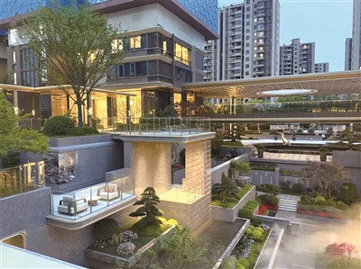 时舟里作为“杭州首个立体花园示范区”受到业内外人士的一致好评。走进项目,自动扶梯穿梭于立体花园之间,让项目更有科技感。天桥连接了会客厅、架空层和内部园林。庭院下沉,小区抬高,让车库位于地面。在架空层的露台散步,还能俯瞰周边的街区。低楼层的业主也不会因为采光和通风而烦恼了。