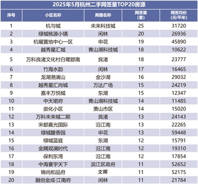 上个月杭州二手房网签量TOP20 图源杭州贝壳研究院
