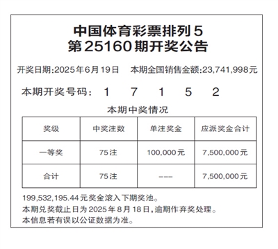 中国体育彩票排列5 第25160期开奖公告