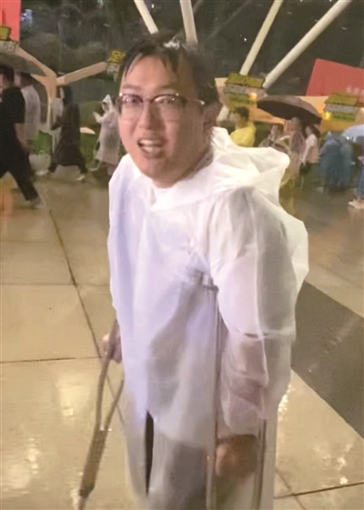 崴了脚的小陶昨天从苏州开车过来支持常州