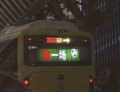 “这次苏超,常州出圈,我们也很高兴,就是希望常州能赢一场,或进一球。”在常州定居20年的时女士,6月20日晚开车经过常州站附近关河东路,看到路上行驶的203路公交车后窗滚动的显示屏,上面写着“拿一分、赢一场、重夺笔画、继续战斗”。