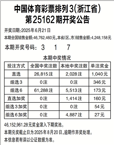 中国体育彩票排列3(浙江省)