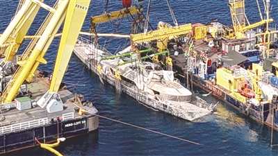 打捞工作于今年5月开始,一名潜水员在打捞过程中意外身亡,导致作业受阻。“贝叶斯”号被打捞出水时,其72米高的桅杆被切割并留在海底,等待日后打捞。