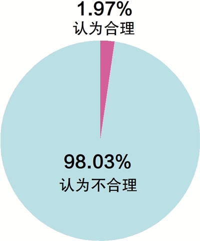 在调查中,98.03%的人认为停车收费超过几分钟就收1小时的模式不合理,仅有1.97%的人表示合理。这表明大部分受访者对当前的收费模式持不满态度。