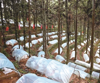 林下仿野生种植基地,全方位还原灵芝生长的自然环境,用山泉水灌溉,过程中不打农药。