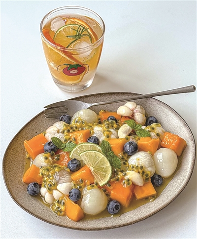 橙友“天蝎园儿”:适合夏天的百香果拌芒果山竹荔枝。酸甜浓郁的百香果,拌水果真的巨好吃啊!我终于理解它为何火了,做法简单又漂亮好吃,是可以吃一辈子的小甜品。